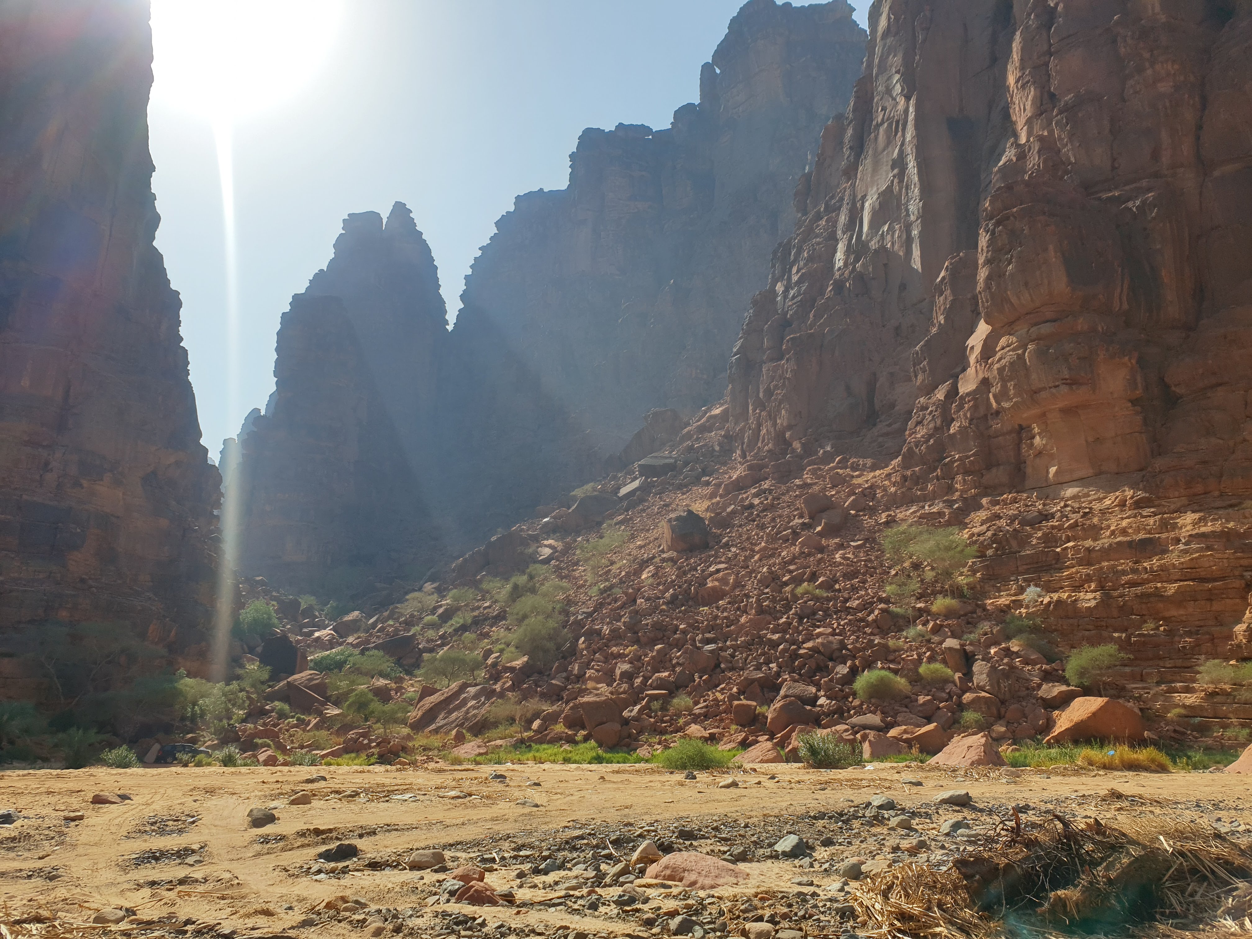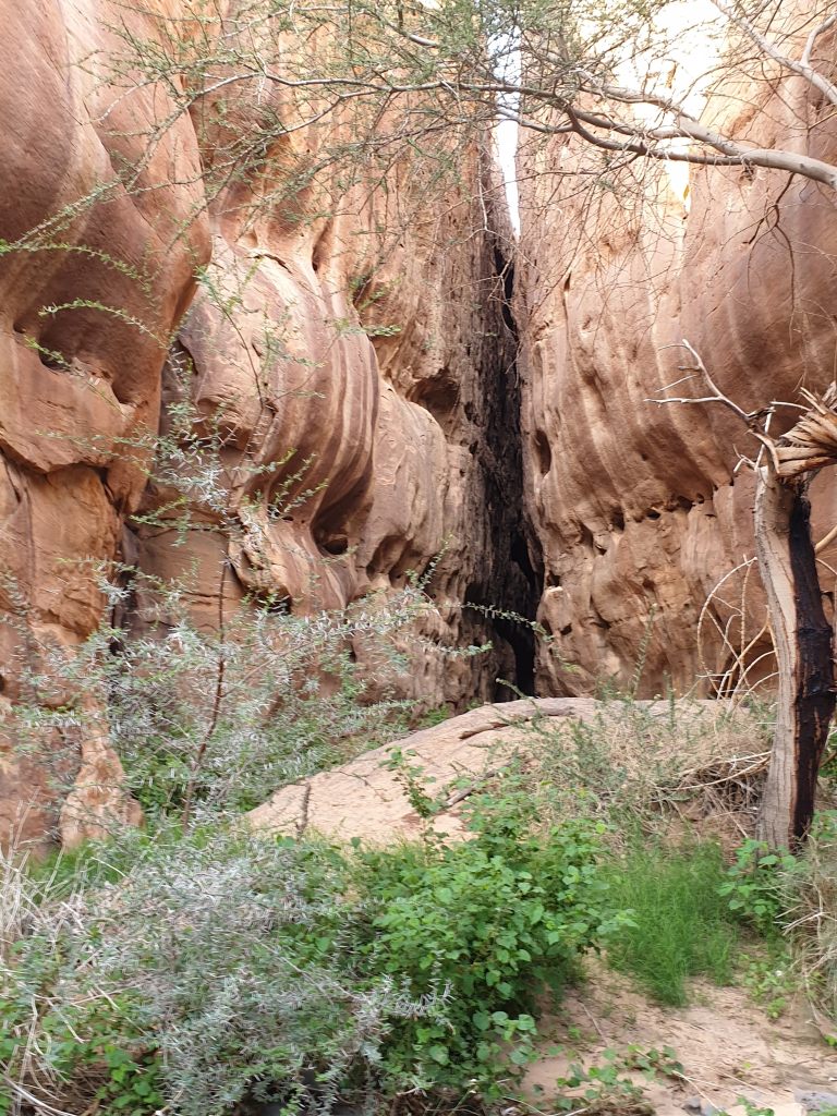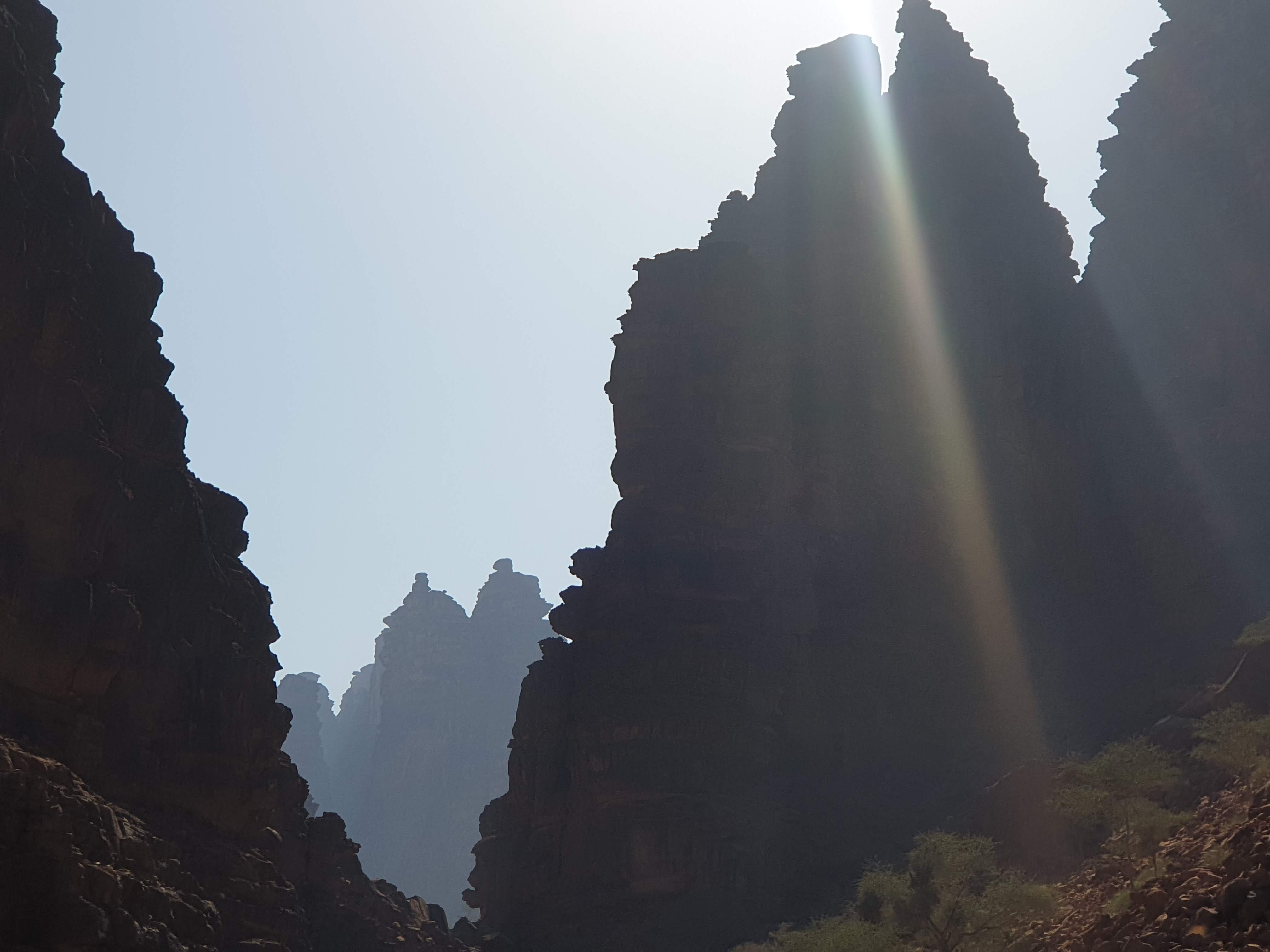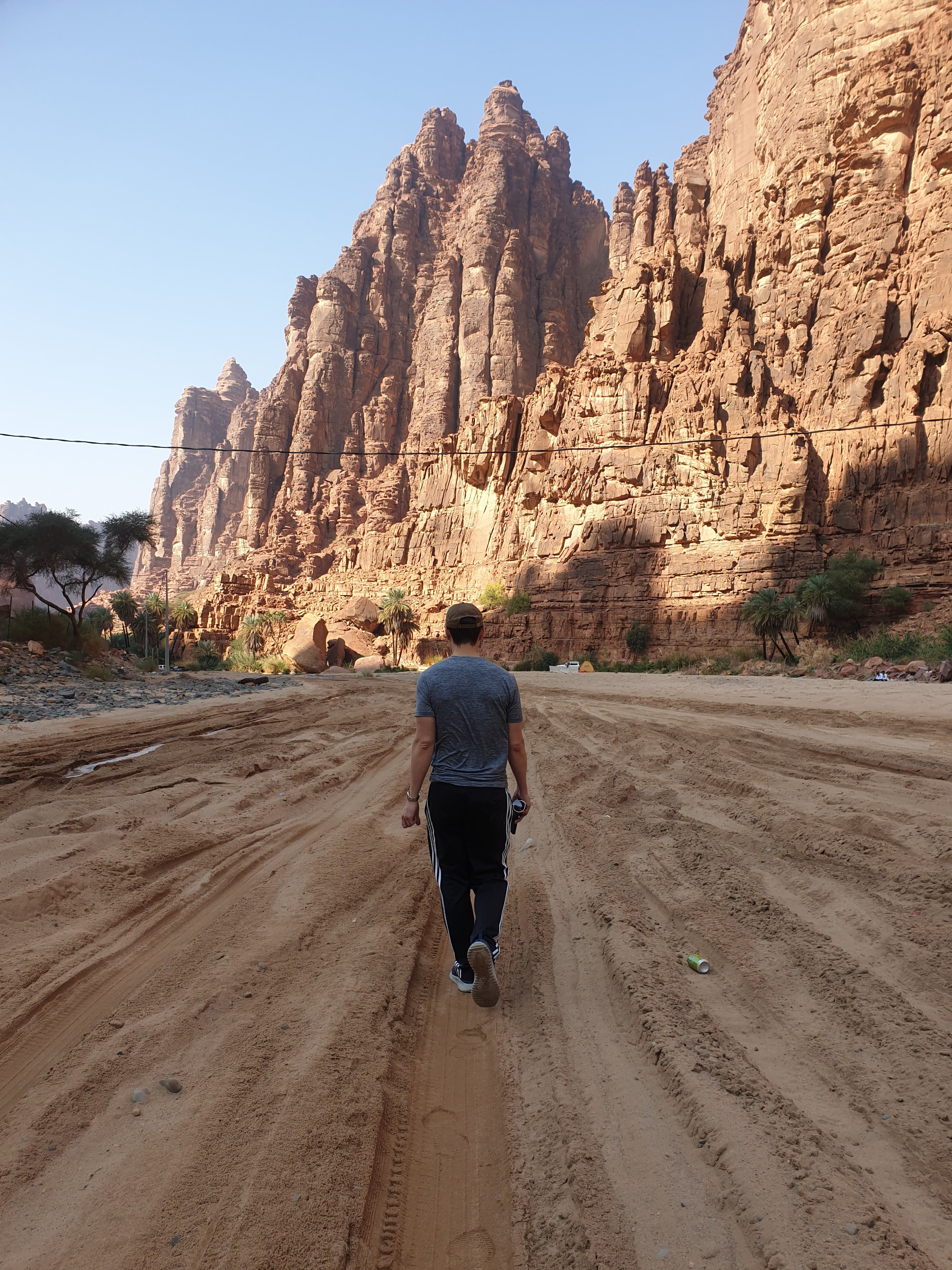 Waking up, my wonderful travel companion and I embarked on a 14+ hour drive through Hail, all the way to Tabuk. This drive showed us how the Saudi landscape can evolve from flat, sandy desert, to rolling hills and beautiful steep, rocky mountains. Our Budget rent-a-car vehicle dubbed “Timothy” held up nicely considering it’s failed attempt through the treacherous conditions near Edge of the World. On this trip, we saw our first of thousands of camels along the highways and side routes. Camels in Saudi Arabia are mostly owned but allowed to roam freely. The ones that are owned have hobbles (aka prison shackles) around their two front feet (camels do NOT have hooves, but rather two toes at the front of their feet). On several occasions, a shephard was leading the way on camel-back and behind him were over 50 camels following in synchrony. Thanks to Spotify and the one and only DJ Nicola as a copilot, we maintained some semblance of sanity during our trip and arrived in Tabuk ready for a night’s rest for the next day’s trip to Wadi Al Disah.
