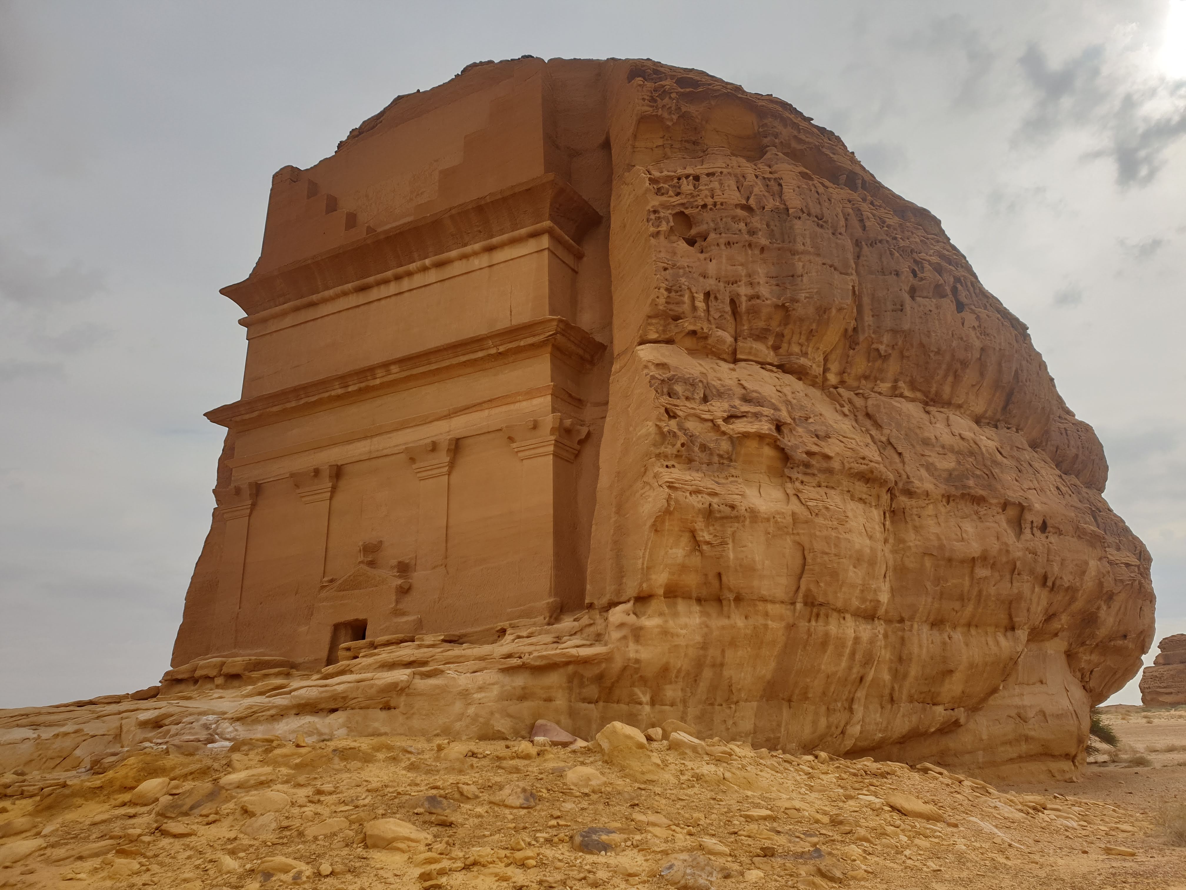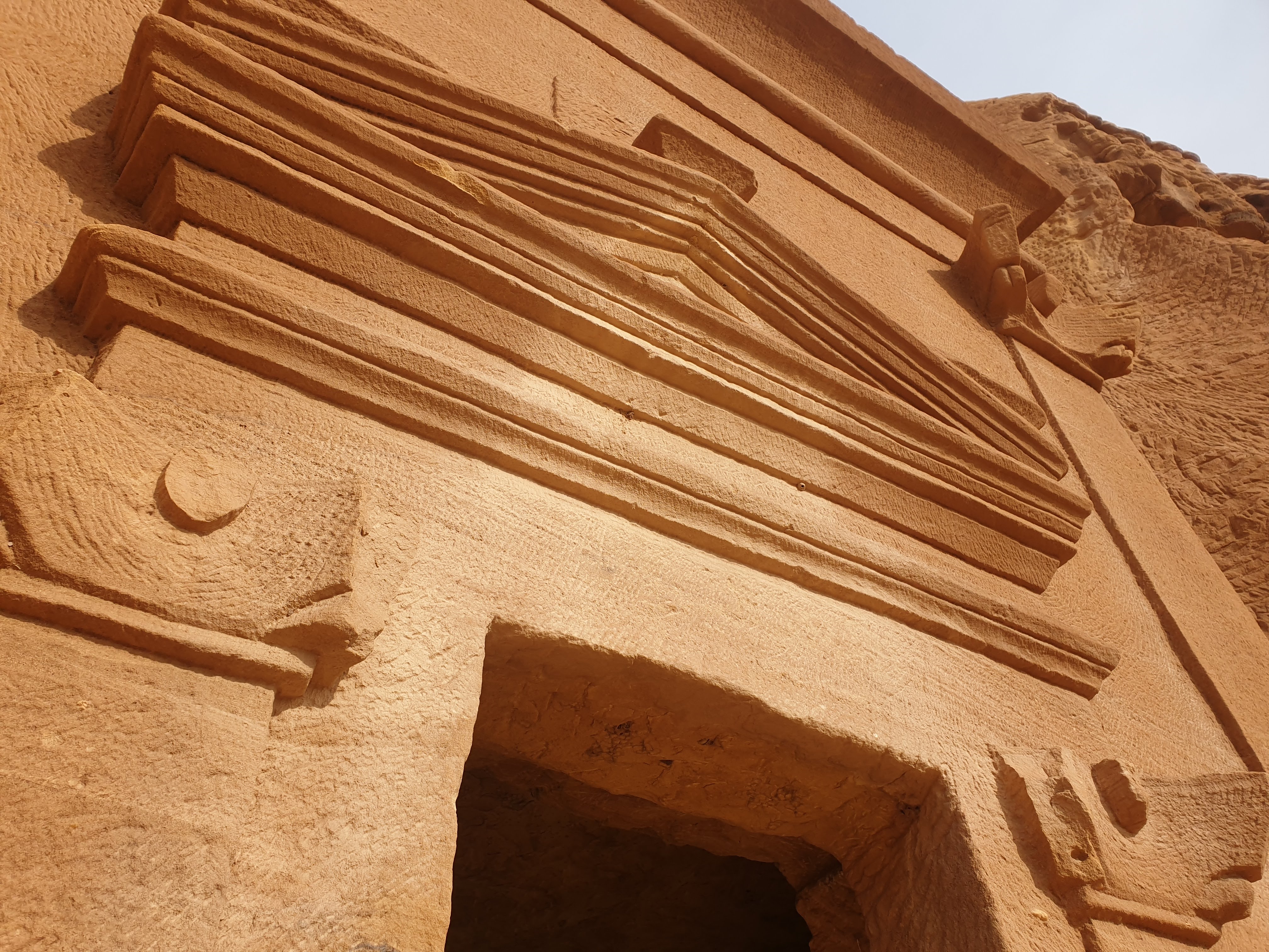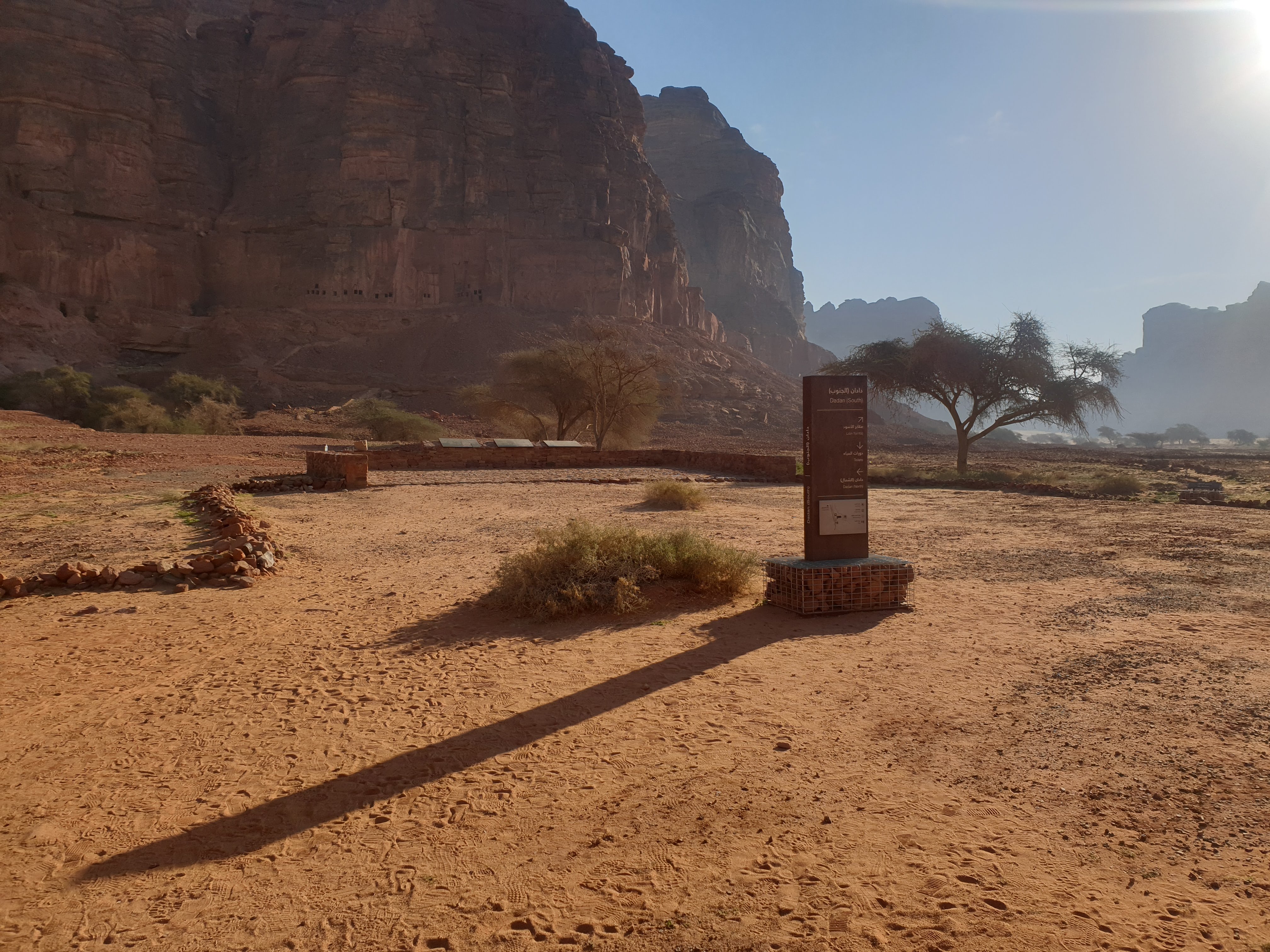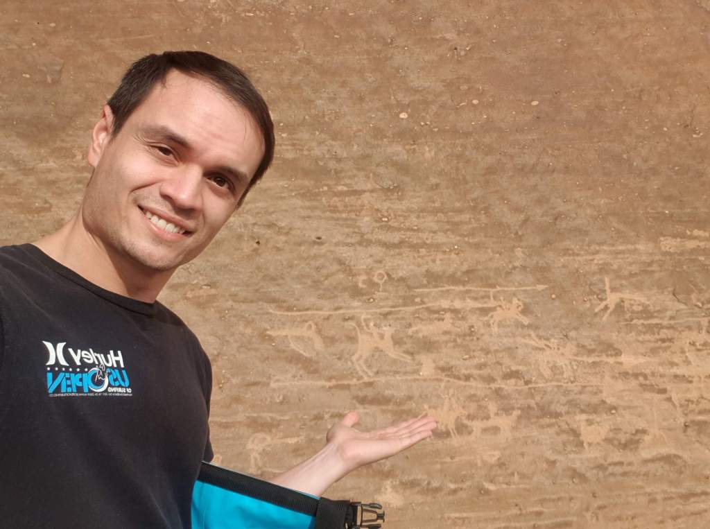 For our first full day in Al Ula, we decided to explore Dadandian tombs (including the infamous Lion’s tomb), the petroglyphs, hieroglyphs and the majestic rock formations in the greater Al Ula vicinity. There were several on the list, but Elephant rock and vase rock were highlighted most frequently so we went to those first. There are hundreds of tombs and most tour guides and archeologists agree that less than 5% of the historical sites have been discovered. The most noticeable tombs were cut into the rock face south of the Dadan historical site, a burial location that likely reflected the social position of the deceased. The grandeur of the Lion’s Tombs for instance probably reflected the the social status of the entombed.