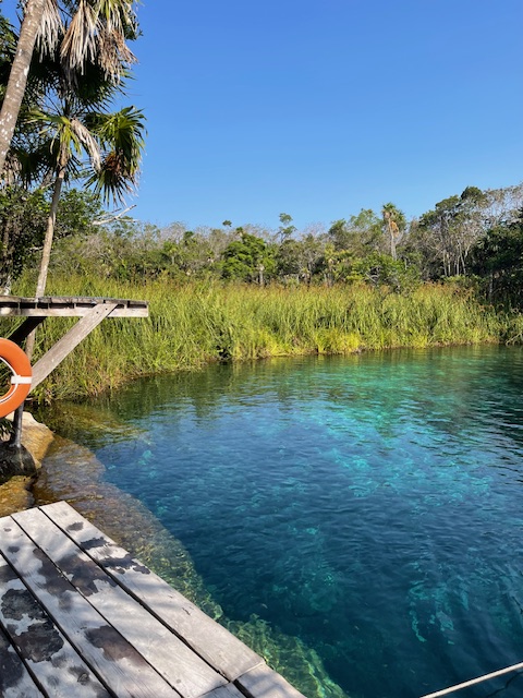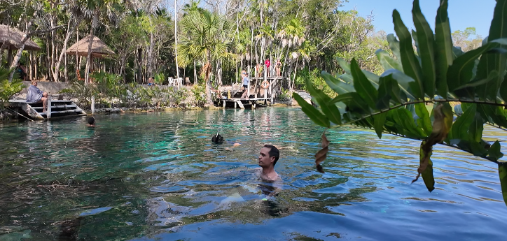 In Tulum, I visited two cenotes: Cenote Calavera, and Cenote Corazon. Cenote Calavera is a cavernous cenote with several holes for jumping into the water and a swing. A family-owned coconut juice vendor on the side of the road said Cenote Corazon was their favorite so I went to that one afterwards. The contrasting geology between both cenotes showed me how varied they are. Upon payment, a guard at the entrance of each cenote tapes a wristband around your arm, similar to entering a club. I later found out they don’t do this at all cenotes, only the popular ones. A constant between them all is the fresh, filtered water that is crystal clear. This is due in part to the strict regulations they have for swimmers before entering a cenote: no sun-tan lotion, no sun-block, no insect repellant and no soap of any kind. I could imagine this to be quite challenging to enforce.