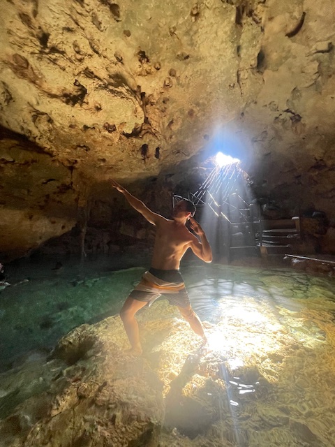 So what is a cenote? It’s a deep limestone sinkhole that contains fresh water. They were quite important to the Mayan people, providing both a reliable source of water as well as access to the underworld. Mayans believed that Chaac, the rain God, along with others, held an inordinate amount of power so the local Mayan people would visit cenotes to make ritual sacrifices to appease them from time to time. Chichen Itza, for example, was built close to two cenotes for this very reason. It is also believed by a vast majority of scientists that an asteroid named Chicxulub crashed into the Yucatan approximately 66 million years ago, clearing the earth of over 75% of animal and plant species and altering the geologic landscape of the Yucatan. Cenotes were a by product of the impact and as limestone eroded, fresh water pools became visible, providing access points for animals and later, people, into the magical world of cenotes.