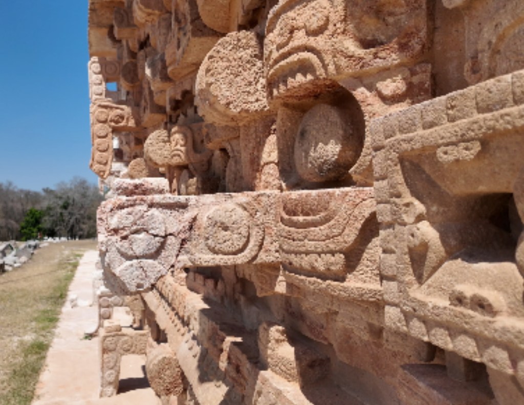 Another highlight of Merida is all the parks with their distinguished cathedrals. These are located in plazas similar to Spain and Italy and make for great coffee tasting and wine tasting locales. This city is primed for tourism and it’s continuing to develop. I project it will increase in popularity as more people become aware of the cultural significance surrounding Merida. The other ruins I visited while here were Uxmal and Kabah. Uxmal and Kabah were both constructed atop a platform plaza and honored the Quetzal god. Kabah’s eastern was constructed in the Chenes style and had amazing detail that was preserved remarkably well for visitors to admire. The twenty-six chamber building is covered in masks and designs honoring the rain God Chaac and this includes glyphs regarding royal authority with date ascensions, ritual activity, and possible military victories. It was clearly a venerable location because the governors house was built in close proximity and if I’ve learned anything through my travels, it’s that upper classmen have the most ornate architecture.